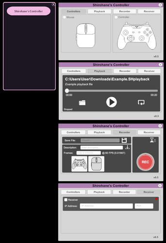 Transfer controller and mouse data across a local network to your VNyan installation using the Shirohane Controller receiver. This allows support for dual PC streaming setups with one computer dedicated to gaming, and the other to streaming/video encoding (running OBS and VNyan). Compatible with the "Shirohane Controller for Windows" application (sold separately), or build your own compatible client application (instructions provided in the development manual).